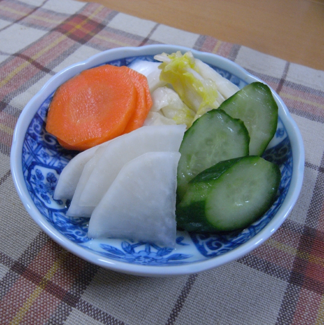 さてそれとはまったく別のジャンルなのですが、現在浅漬けを作って食べるのが私の中では密かなマイブームになっています。 どちらかというと冷蔵庫の中の残り野菜のお片付け用として買った浅漬けの素なのですが、浅漬けにすると美味しそうなのでと大根とか買ってきてしまうし。 その内ゴマとかするめとか買ってくるに違いないかと。