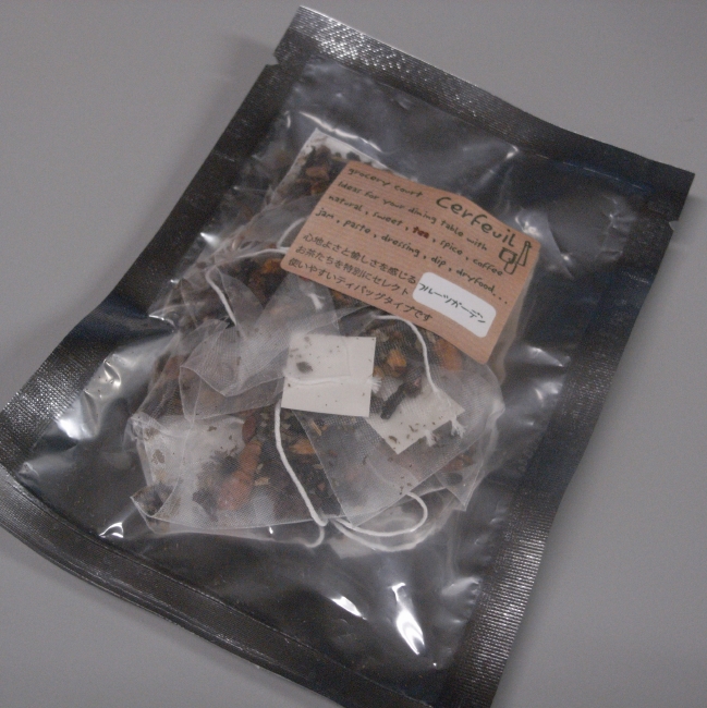 これはいろんなフルーツやハーブがブレンドされたブレンドティー。 ちょっと珍しいハーブティをあげた女の子からお礼でワンパックいただきました。 他にもスティックタイプのセイロンティーやカモミールがメインのハーブティーをいただいたりしました。